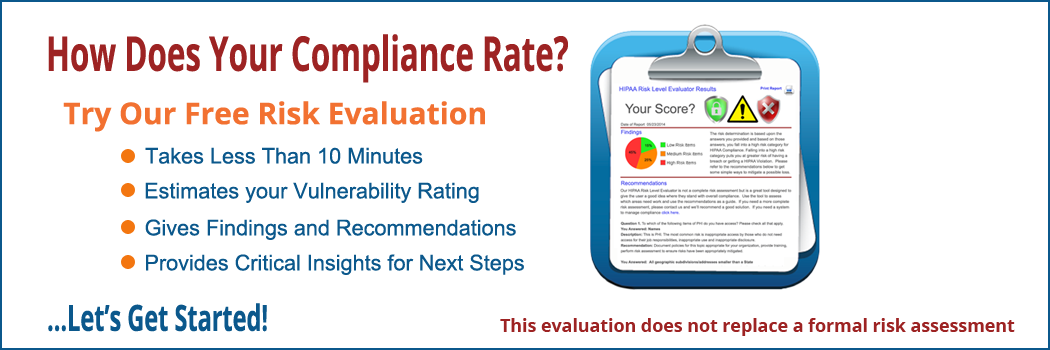 At the end we will ask for your name, company name and email and give you a detailed report immediately. The report is a graphical analysis that shows where you are with compliance. For each question answered, the report will give you a risk level, a detailed explanation and full recommendations based on how you answered each question. Enjoy!